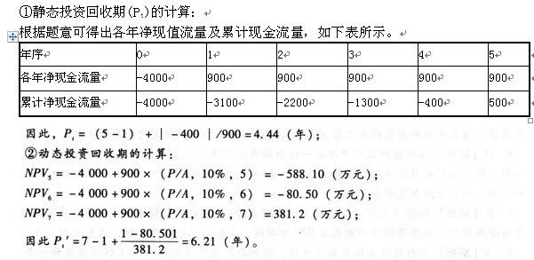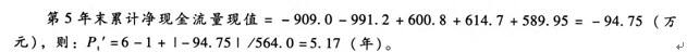 值的年份数-1)+上一年累计净现金流量现值的绝对值/出现正值年份净现金流量。