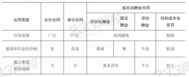 1、不同合同计价方式选择的比较