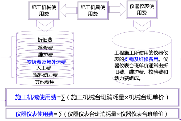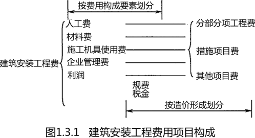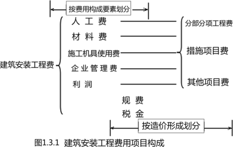 按照费用构成要素划分,建筑安装工程费包括:人工费、材料费(包含工程设备,下同)、施工机具使用费、企业管理费、利润、规费和税金。