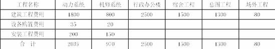 拟建项目的附属工程由动力系统、机修系统、行政办公楼工程、宿舍工程、总图工程、场外工程等组成,其投资初步估计见表1.2所示。