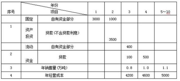 1.项目计算期l0年,其中建设期2年。项目第3年投产,第5年开始到达100%设计生产能力。