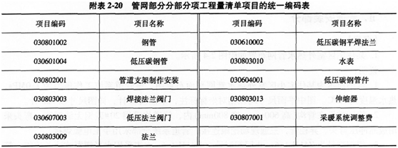 管网部分分部分项工程量清单项目的统一编码见附表2-20
