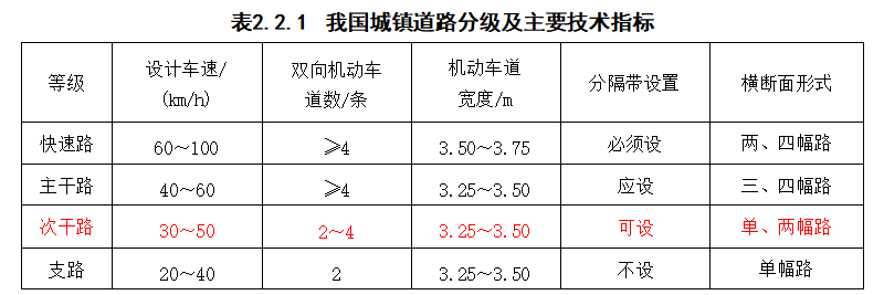12.设计车速为50km/h,设置分隔带,横断面形式为两幅路所对应的城市道路等级是( )