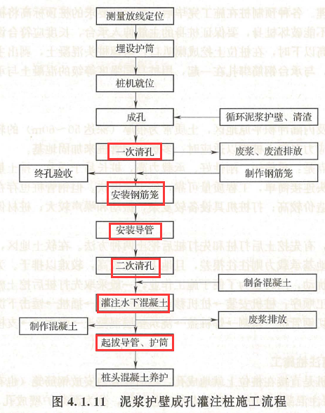 D.一次清孔一二次清孔一安装导管一安装钢筋笼一灌注水下混凝土一拔起导管、护筒