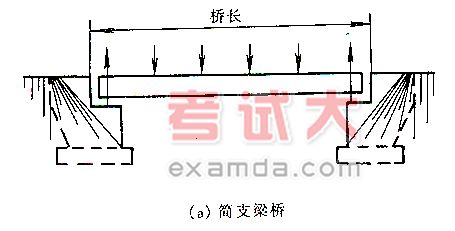 1.梁式桥 梁式桥是指其结构在垂直荷载作用下,其支座仅产生垂直反力,而无水平推力的桥梁。梁式桥的特点是其桥跨的承载结构由梁组成。梁式桥可分为简支梁式桥、连续梁式桥、悬臂梁式桥。 (1)简支梁式桥。