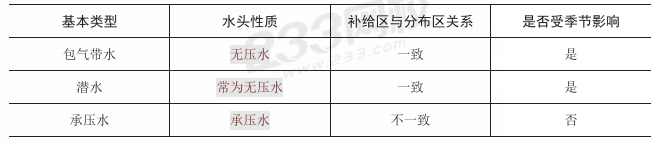 根据埋藏条件,将地下水分为包气带水、潜水、承压水三大类。