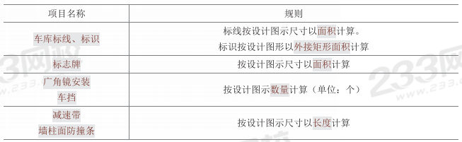 C选项错误,车库标线、标识、标志牌,标线按设计图示尺寸以面积计算,标识按设计图形以外接矩形面积计算,标志牌按设计图示尺寸以面积计算。