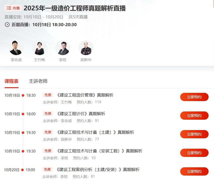 2️⃣2025年一级造价工程师真题解析直播!李恺、王竹梅、李志成、吴新华老师解读2025年一造真题,来跟老师对答案!
