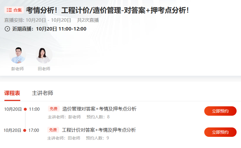 10月18日 | 9:00—11:30 | 建设工程造价管理 |