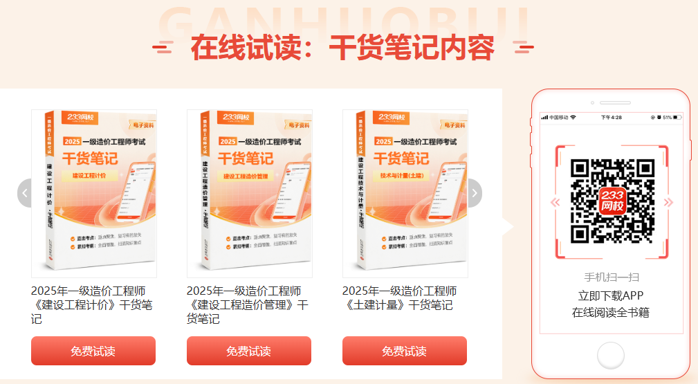 备考一造离不开学习资料,除了官方教材以外,建议大家选择一些比较经济适用的学习资料,没有必要找很多学习资料一顿记,233网校会根据不同的阶段上线不同的学习资料,包括大纲教材变动对比,学习计划表,思维导图,高频考点汇总,考前30页纸等资料,都是免费下载,各位考生可以在备考时期多多关注233网校的更新。