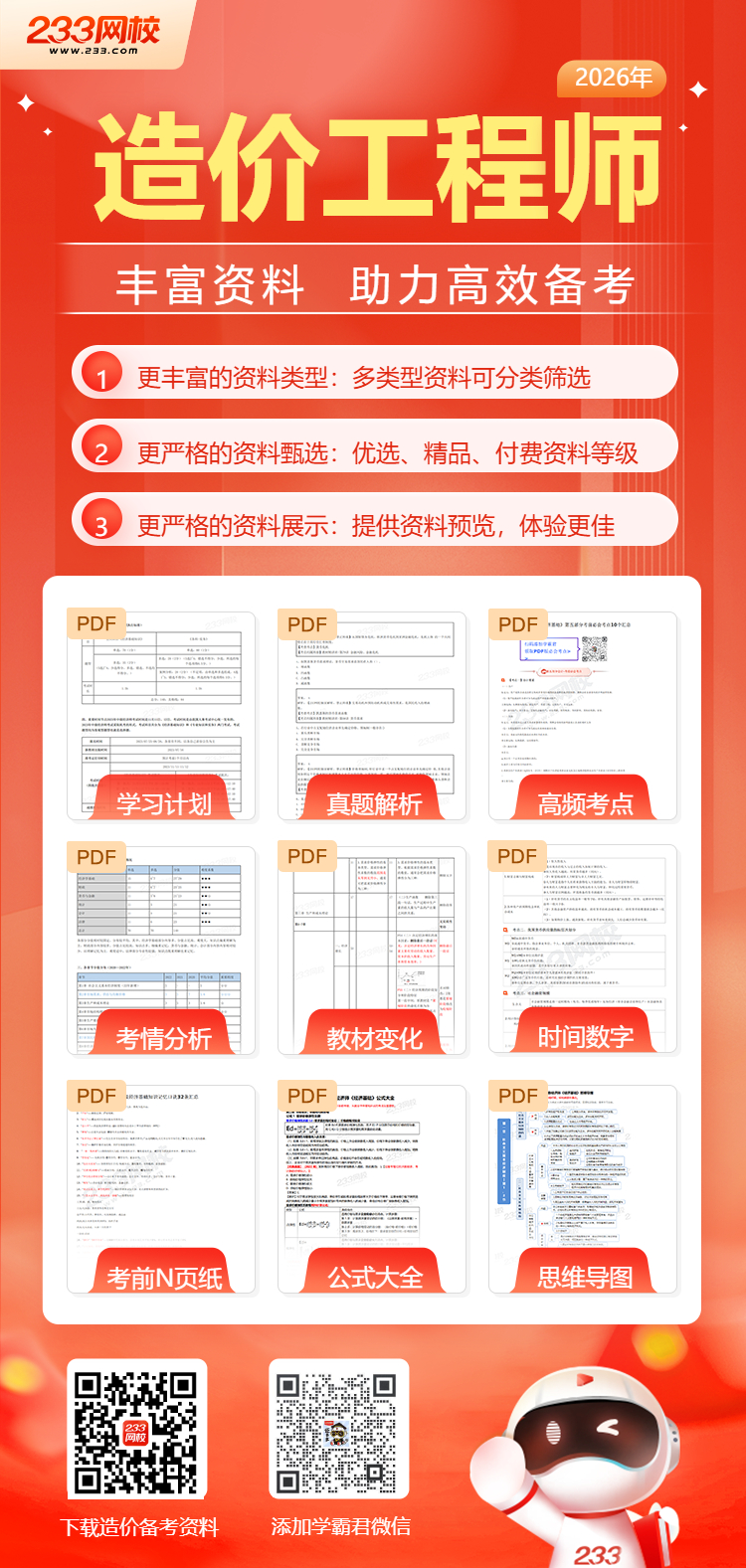 这600下载币,正是您备战2026一级造价师考试的关键启动资源。233网校造价资料包将定期上新学习计划、高频考点、时间数字计算公式、易错考点、思维导图、考前N页纸等备考资料!