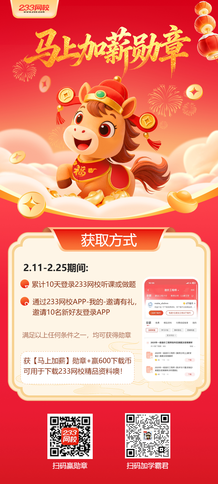 每一份“马上加薪”的美好期许,背后都需要“马上学习”的扎实行动。这个新春,让我们不只有团圆与祝福,更有一份对自己的投资与期许。233网校陪你,在春节的欢聚时刻,也为未来积蓄能量,让这个年过得既温暖,又有力量。对“马上加薪”的期待,从解锁这枚勋章开始!