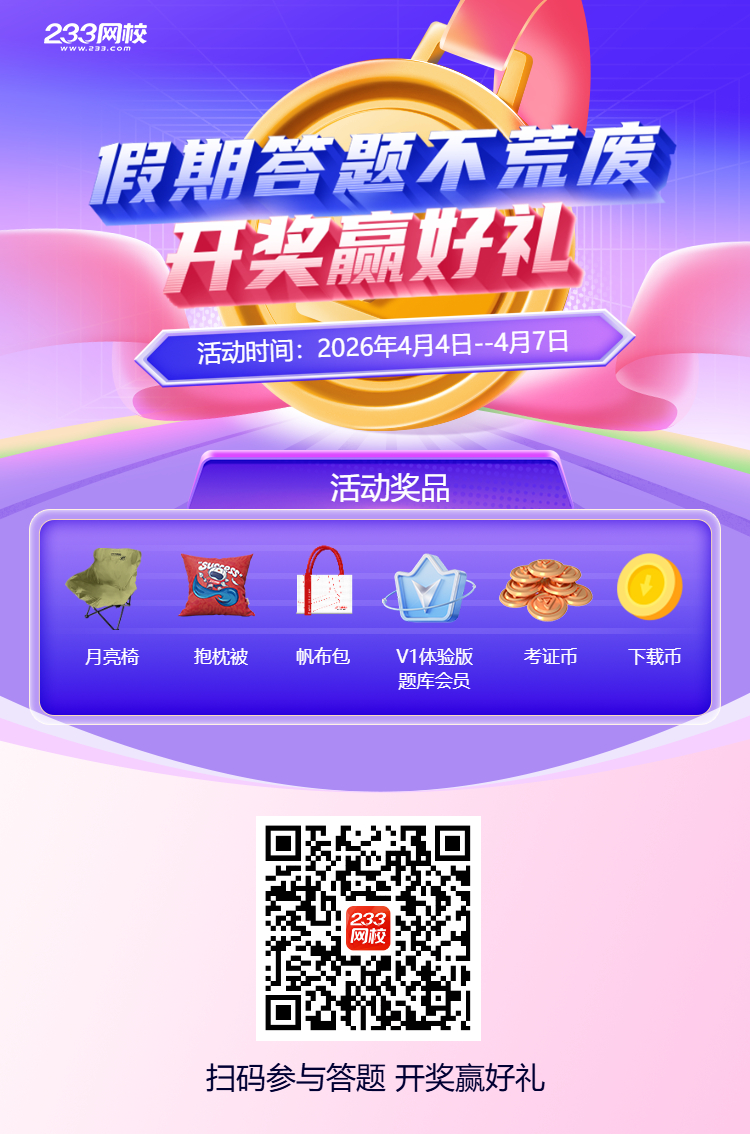 在233网校,我们不仅为你提供优质的学习资源,更用实实在在的福利为你的备考加油助力!快来参与答题活动赢好礼!