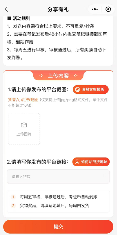 ②需要在笔记发布后48小时内提交笔记链接截图审核,逾期作废;