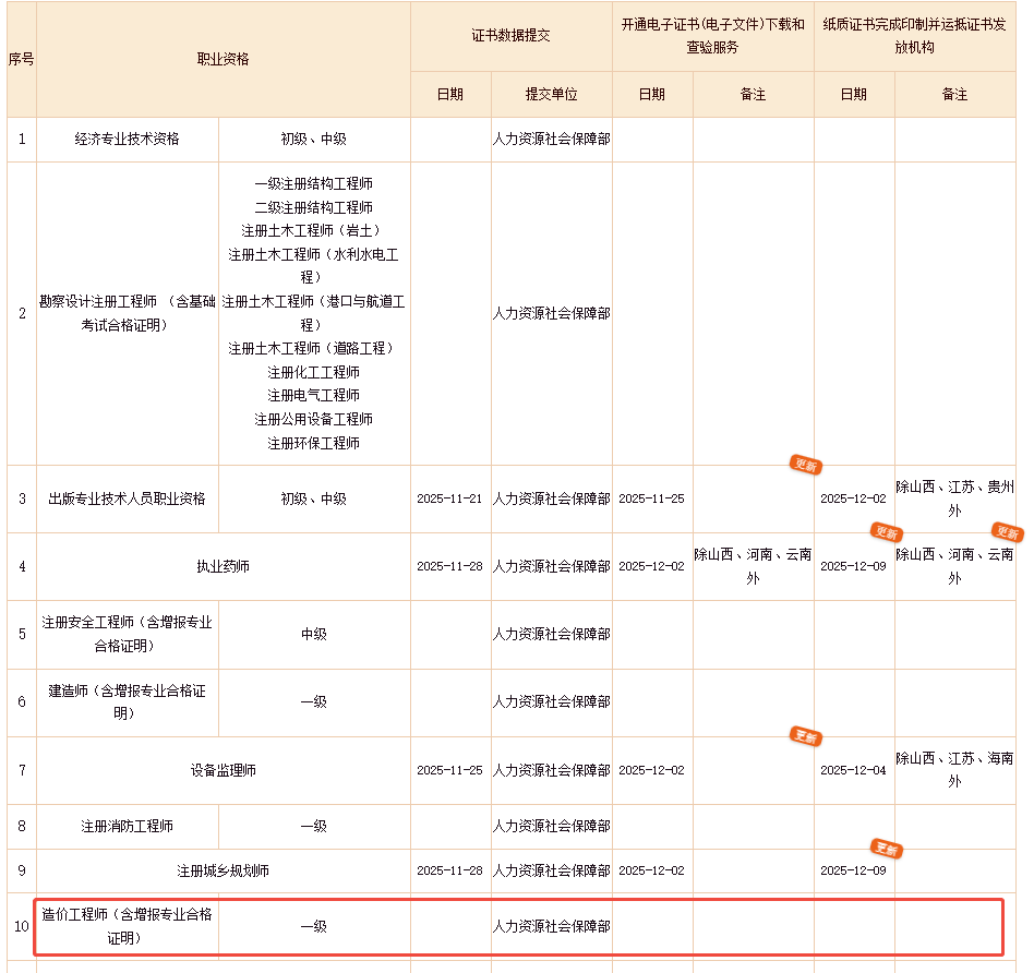 2025年一级造价工程师电子证书在中国人事考试网下载,预计成绩公布一个月左右可下载。