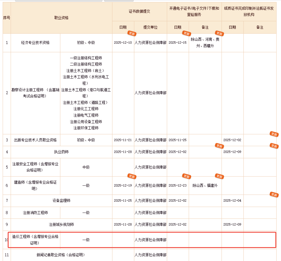 点击【证书制发进度】可查看目前证书制发进度(以下截图为2025年12月25日)。