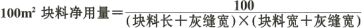 每100m2瓷砖墙面中瓷砖的净用量=100/[(0.2+0.005)×(0.3+0.005)]=1599.36(块),