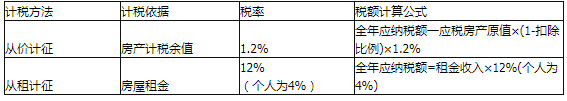 2、从租计征。计税依据为房产租金收入,税率为12%,对个人按市场价格出租的居民住房,暂按4%税率征收房产税。