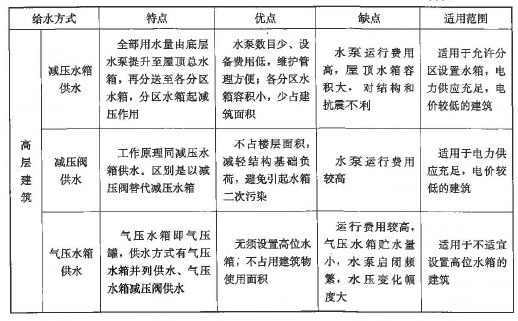 给水系统按给水管网的敷设方式不同,可以布置成下行上给式、上行下给式和环状供水式三种管网方式。