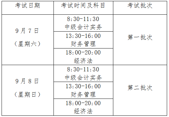 中级资格考试于2019年9月7至8日举行,共两个批次。