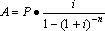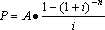 式中,分式称作年金现值系数,记作(P/A,i,n)。