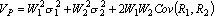 式中,VP为投资组合的方差,W1,W2分别为第一、二项资产在总投资额中所占的比重。