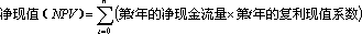 ②列表法。本法是指通过现金流量表计算净现值指标的方法。即在现金流量表上,根据已知的各年净现金流量,分别乘以各年的复利现值系数,从而计算出各年折现的净现金流量,最后求出项目计算期内折现的净现金流量的代数和,就是所求的净现值指标。