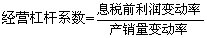 对经营杠杆的计量最常用的指标是经营杠杆系数或经营杠杆度。经营杠杆系数,是指息税前利润变动率相当于产销业务量变动率的倍数。计算公式为: