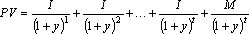 不处于最后付息期的固定利率附息债券的到期收益率可用下面的公式计算: