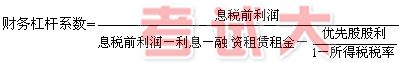 对于存在银行借款、融资租赁,且发行优先股的企业来说,可以按以下公式计算财务杠杆系数: