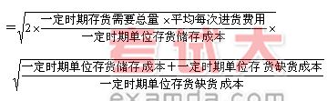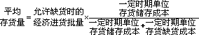 允许缺货的情况下,企业对经济进货批量的确定,不仅要考虑进货费用与储存成本,而且还必须对可能的缺货成本加以考虑,能够使三项成本总和最低的进货批量便是经济进货批量。