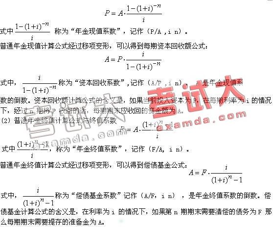 (1)普通年金的现值计算公式与现值系数