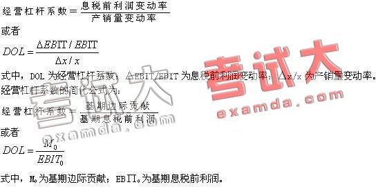 对经营杠杆的计量最常用的指标是经营杠杆系数或经营杠杆度。经营杠杆系数,是指息税前利润变动率相当于产销量变动率的倍数。其计算公式为: