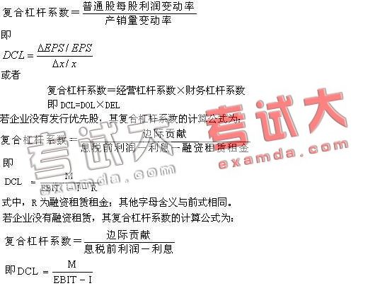 对复合杠杆计量的主要指标是复合杠杆系数或复合杠杆度。复合杠杆系数,是指普通股每股利润变动率相当于产销量变动率的倍数。其计算公式为: