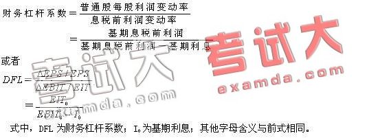 对财务杠杆计量的主要指标是财务杠杆系数。财务杠杆系数,是指普通股每股利润的变动率相当于息税前利润变动率的倍数。其计算公式为: