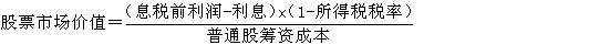 为简化起见,通常假定债券的市场价值等于其面值。股票市场价值的计算公式