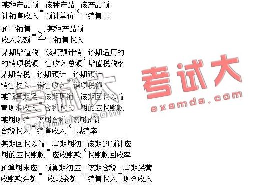 本预算需要在销售预测的基础上,根据企业年度目标利润确定的预计销售量和销售价格等参数进行编制。其编制程序为:(1)计算各该产品的预计销售收入;(2)预计预算期所有产品的预计销售收入总额;(3)预计在预算期发生的与销售收入相关的增值税销项税额;(4)编制与销售收入有关的经营现金收入预算表。相关计算公式为: