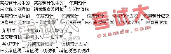 本预算应根据销售预算、材料采购预算的相关数据和适用税率资料来编制。其中,预计应交增值税可按简捷法和常规法两种方法估算。相关计算公式为: