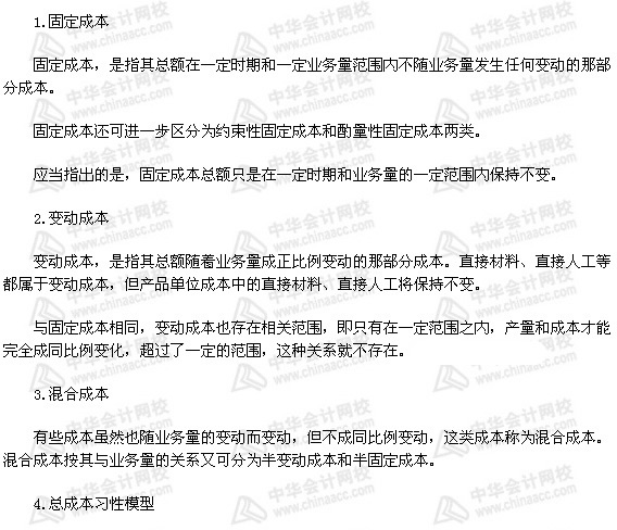 成本习性,是指成本总额与业务量之间在数量上的依存关系。成本按习性可划分为固定成本、变动成本和混合成本三类。