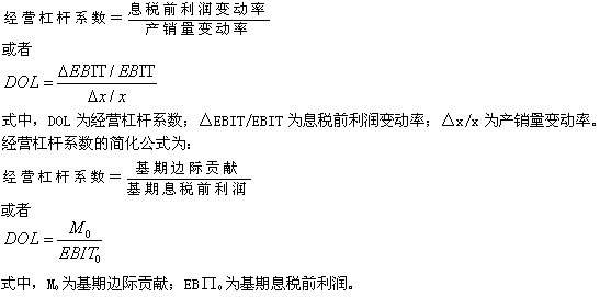 对经营杠杆的计量最常用的指标是经营杠杆系数或经营杠杆度。经营杠杆系数,是指息税前利润变动率相当于产销量变动率的倍数。其计算公式为:
