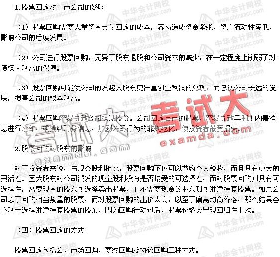 股票回购有助于公司管理者避开竞争对手企图收购的威胁,因为它可以使公司流通在外的股份数变少,股价上升,从而使收购方要获得控制公司的法定股份比例变得更为困难。