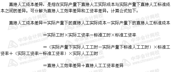 直接人工效率差异=(实际产量下实际人工工时-实际产量下标准人工工时)×标准工资率