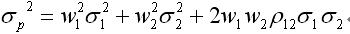 两项资产组合的收益率的方差满足以下关系式:
