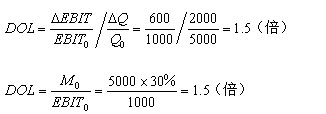 上式表明,在息税前利润为正的前提下,经营杠杆系数最低为1,不会为负数;只要有固定性经营成本存在,经营杠杆系数总是大于1。