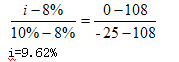 【例题9·单选题】某投资方案,当贴现率为8%时,其净现值为108元,当贴现率为10%时,其净现值为-25元。该方案的内含报酬率为( )。