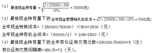 (3)计算最佳现金持有量下的全年有价证券交易次数和有价证券交易间隔期。