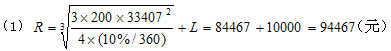 现金存量上限H=3R-2L=3×94467-2×10000= 263401(元)