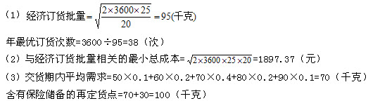 (5)按合理保险储备标准,企业的再订货点=70+20=90(千克)。