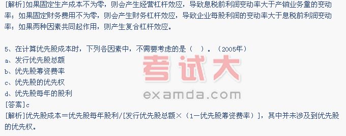 [解析]只要在企业的筹资方式中有固定支出的债务或优先股,就存在财务杠杆的作用。所以,如果企业的资金来源全部为自有资金,且没有优先股存在,则企业财务杠杆系数就等于1。