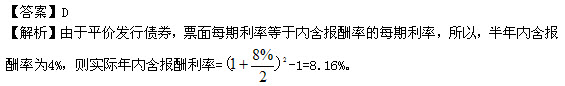 【解析】内部收益率=2.2/21.5+2%=12.23%。